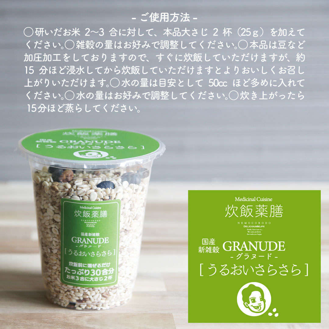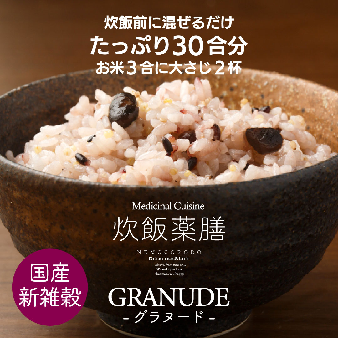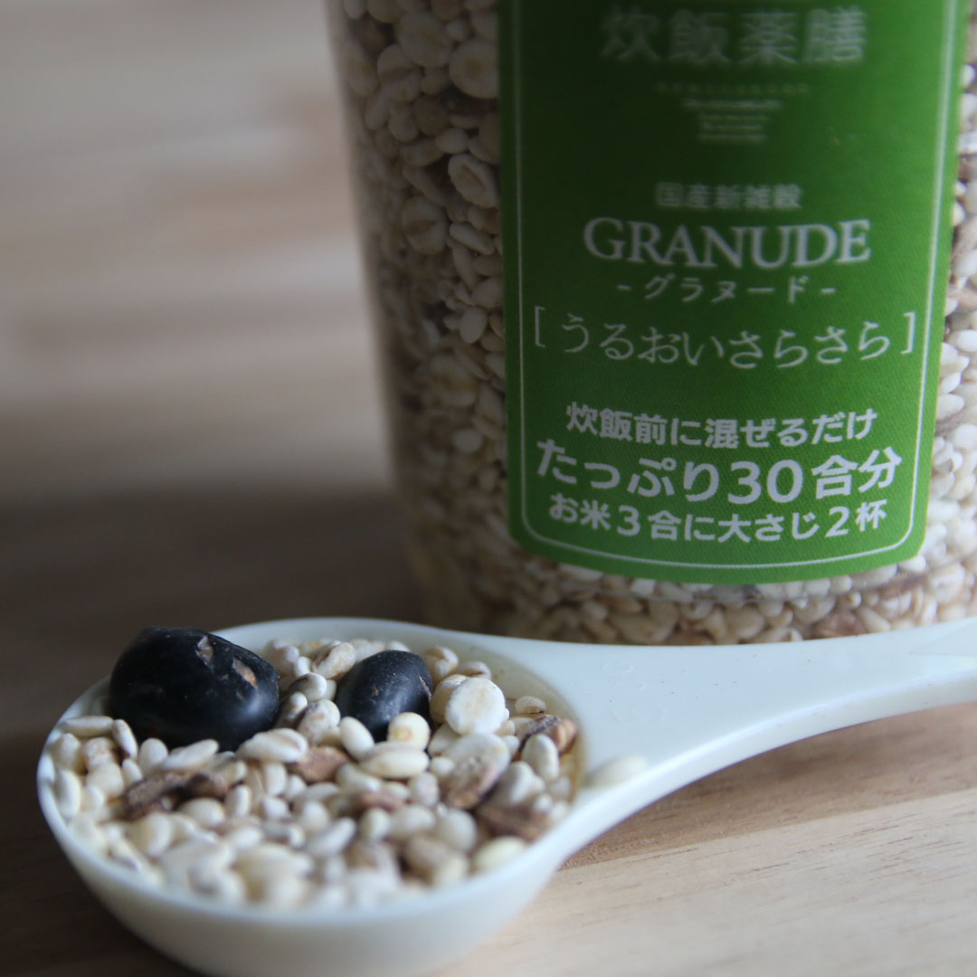 グラヌードシリーズは、通常の雑穀とは違い、素材の栄養素をそのままに、特殊製法の加圧黒豆などおいしさにこだわり炊き上がりをふっくらと仕上がるように調整していますので、いつでもおいしくお召し上がりいただけます。