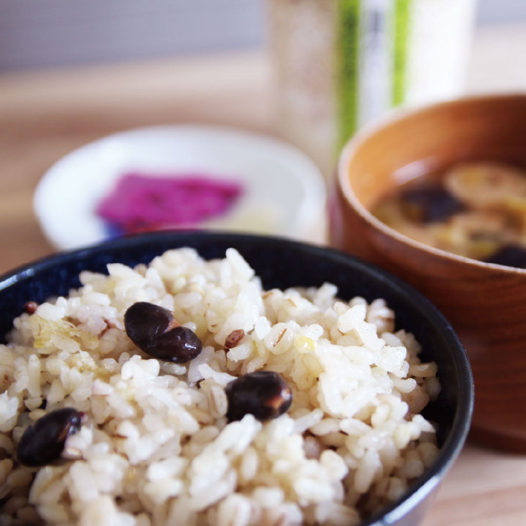 原材料名:うるち米(国産)、米粒麦、胚芽押麦、もち麦、もち米(国産)、黒大豆、発芽玄米(国産)、もち玄米(国産)、丸麦、青大豆、もち黒米(国産)、もちきび、もち赤米(国産)、もちあわ、黄大豆、小豆、ひえ、ハト麦、とうもろこし、甜菜糖、緑茶、きなこ、食塩、砂糖、昆布粒、酵母エキス(酵母エキス、でん粉分解物)、発酵調味料、昆布粉末、菜種油、(一部に大豆を含む)